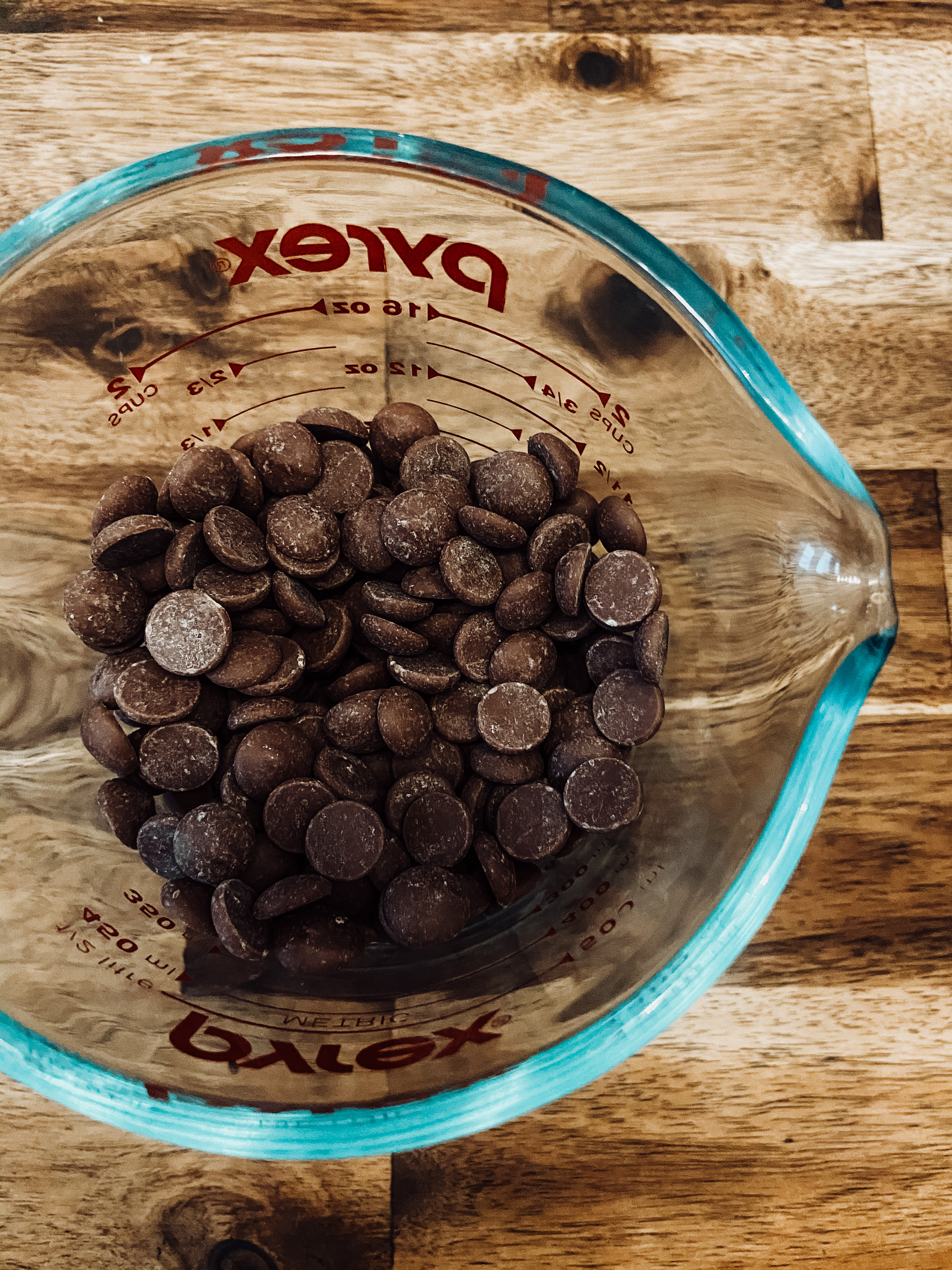 Chocolate. Do not use the candy melts – they tend to leave a waxy residue in your cup. Also no need for the high end Calebut wafers, regular ol’ milk or dark chocolate chips works!