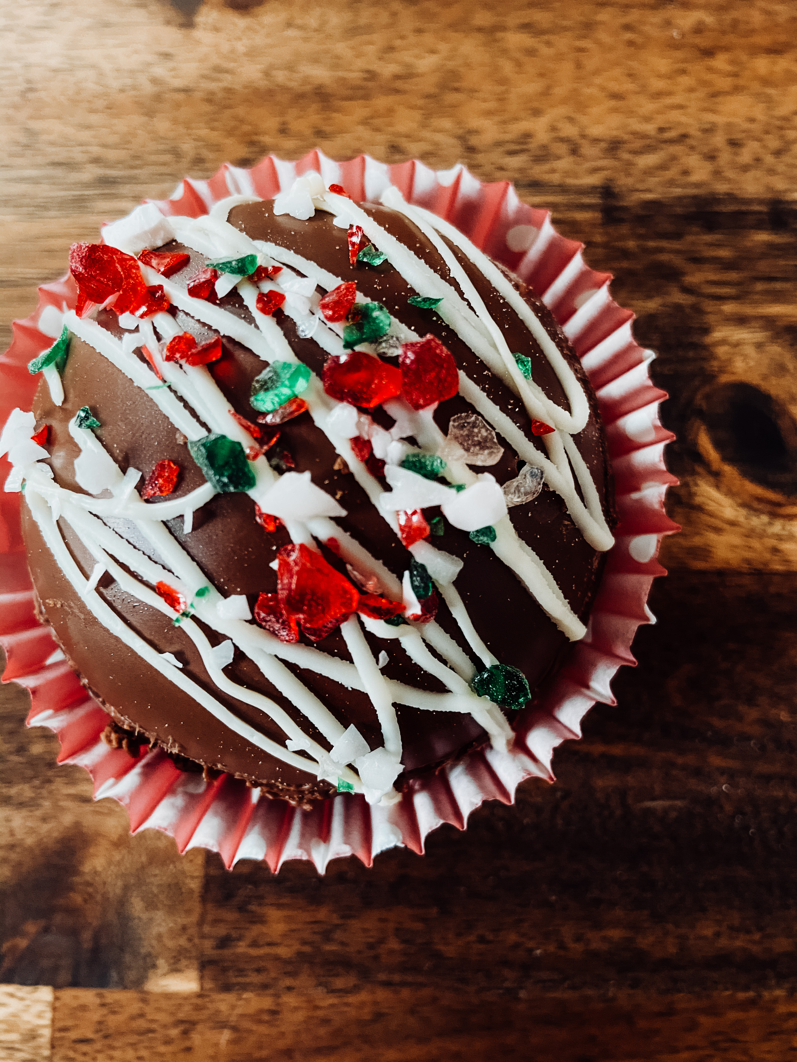 Decorate. Drizzle some extra chocolate and decorate with crushed candy canes, sprinkles or mini chips. Make sure your drizzle is not too hot or it will melt your bomb and you’ll be sad.